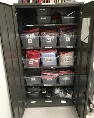He helped start a clothing closet in his department. Staff members donate clothing, and the items are sorted and packaged by size. Going home in paper scrubs after having their clothes cut off during a trauma evaluation can be dehumanizing. The clothing closet provides a small opportunity to dignify the experience.